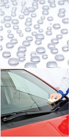 雨の日の視界を視界を良好にします。 フッ素タイプは油膜取り後の施工により圧倒的な撥水力が長期間持続します。